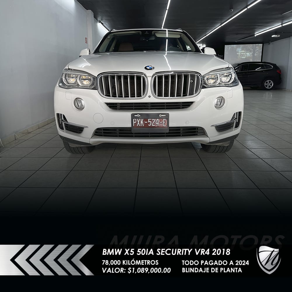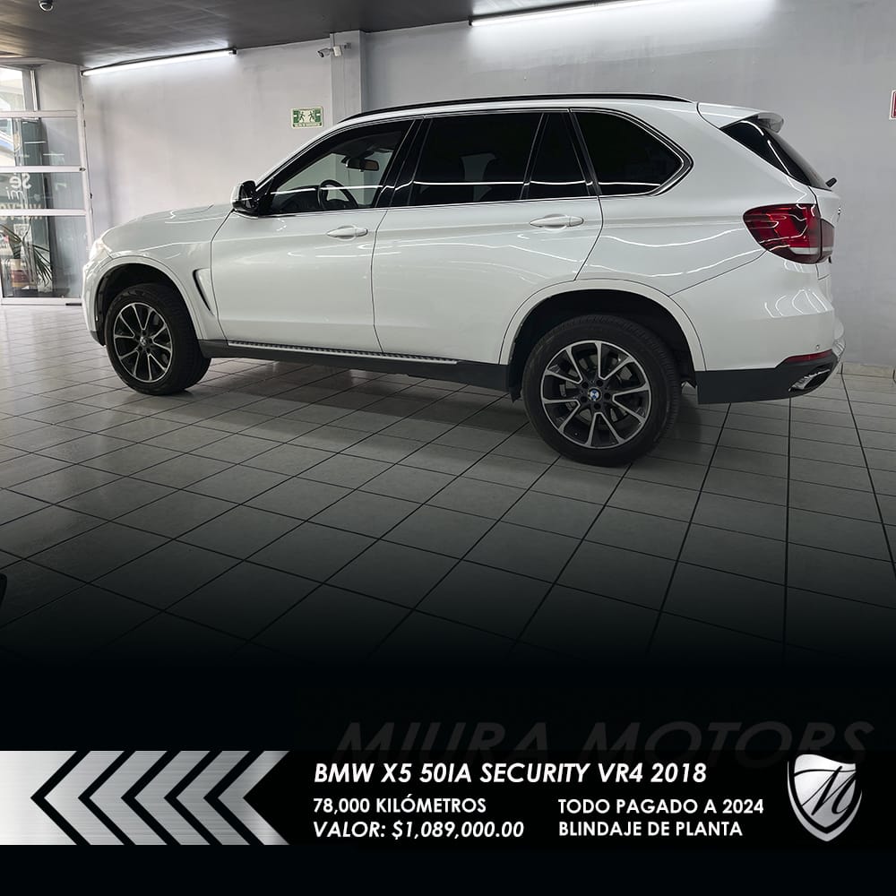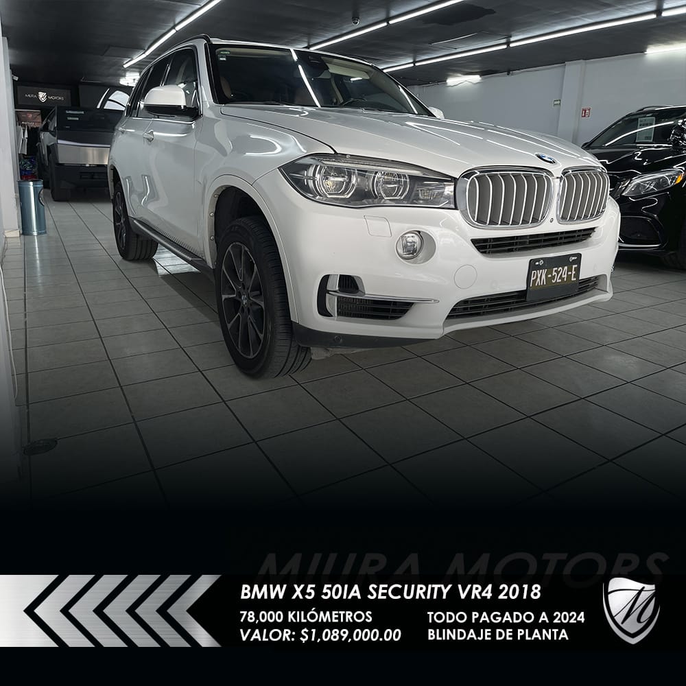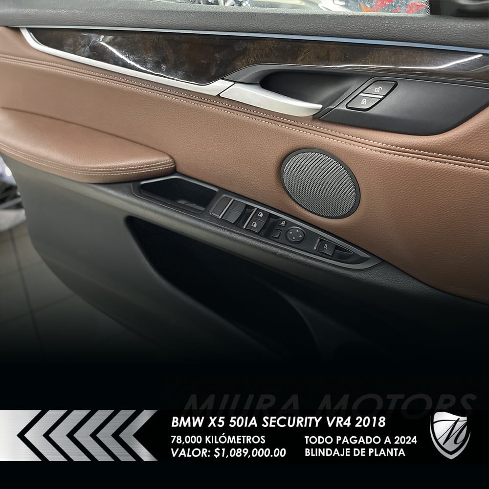 Segura blindada BMW X5 xDrive 50ia Security Nivel blindaje VR4 2018, máxima seguridad; resiste calibres que van desde 9 mm Luger, .357 Magnum y hasta .44 Magnum, 78,000 kilómetros, Precio: $1,089,000.00. Protege a tu familia! Pregunta por forma de pago. ¡Apártala y gánala!
