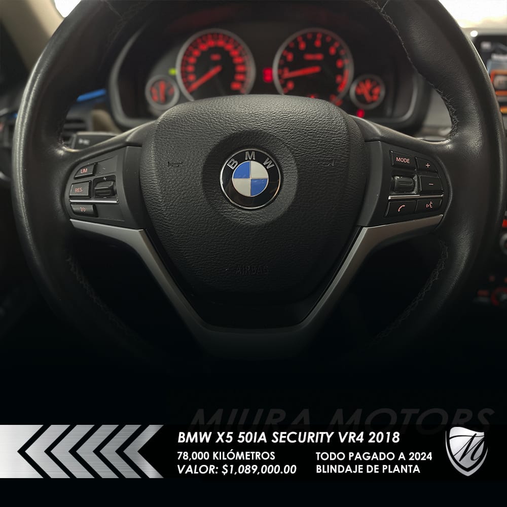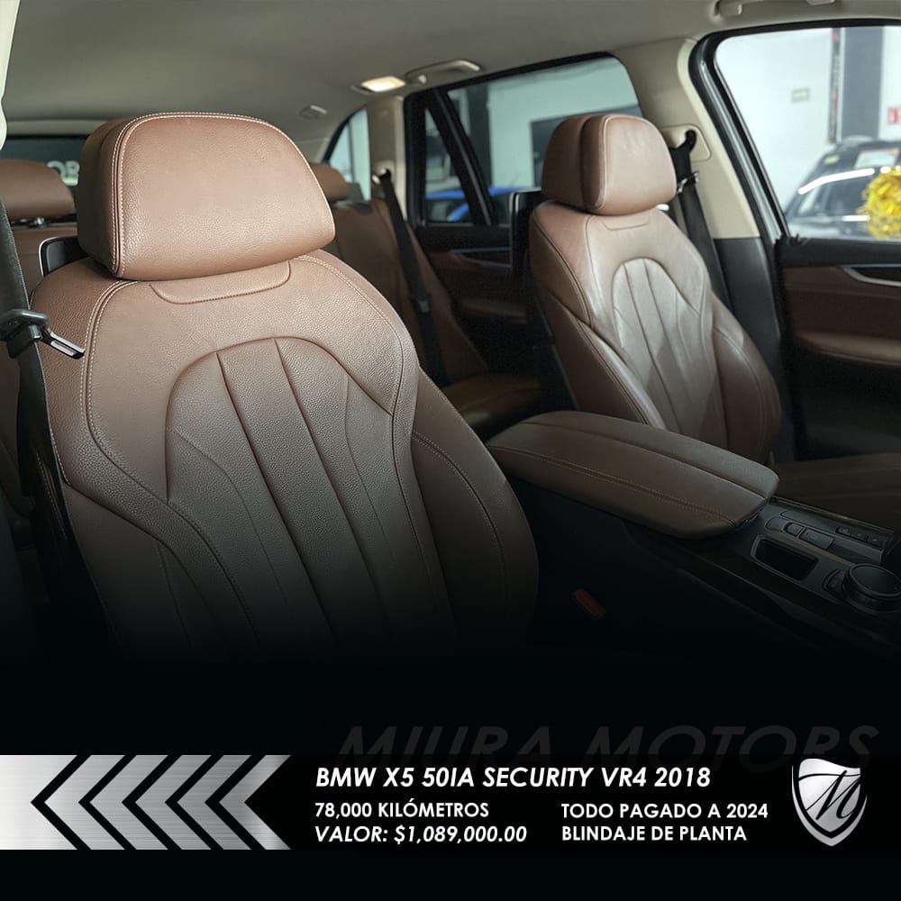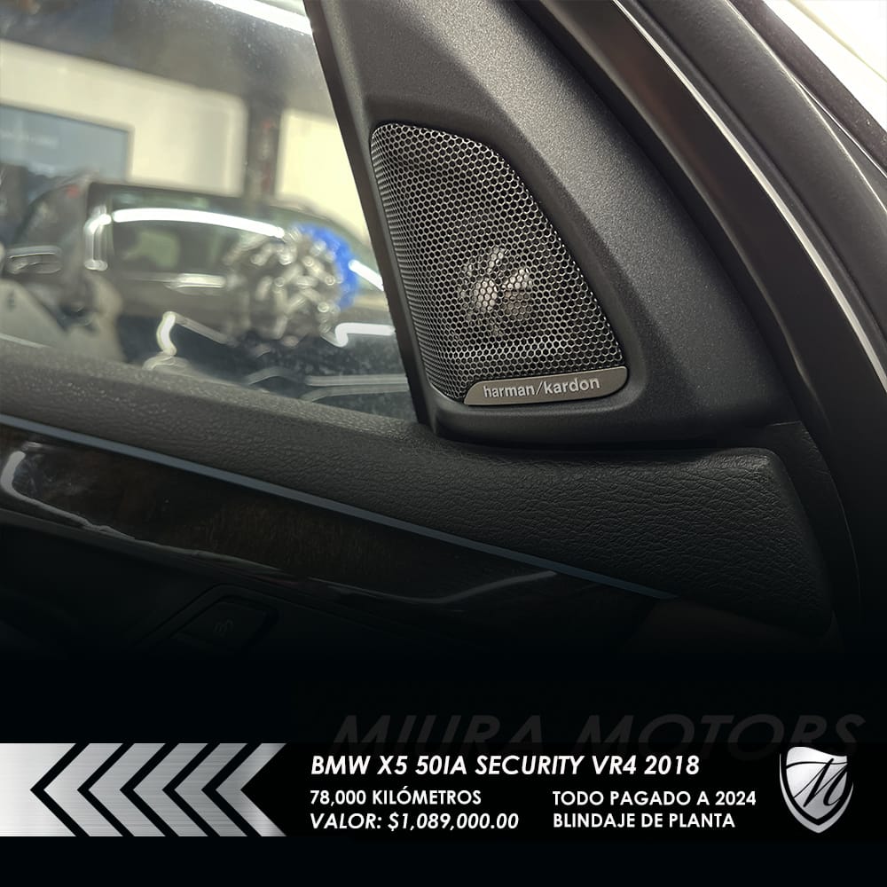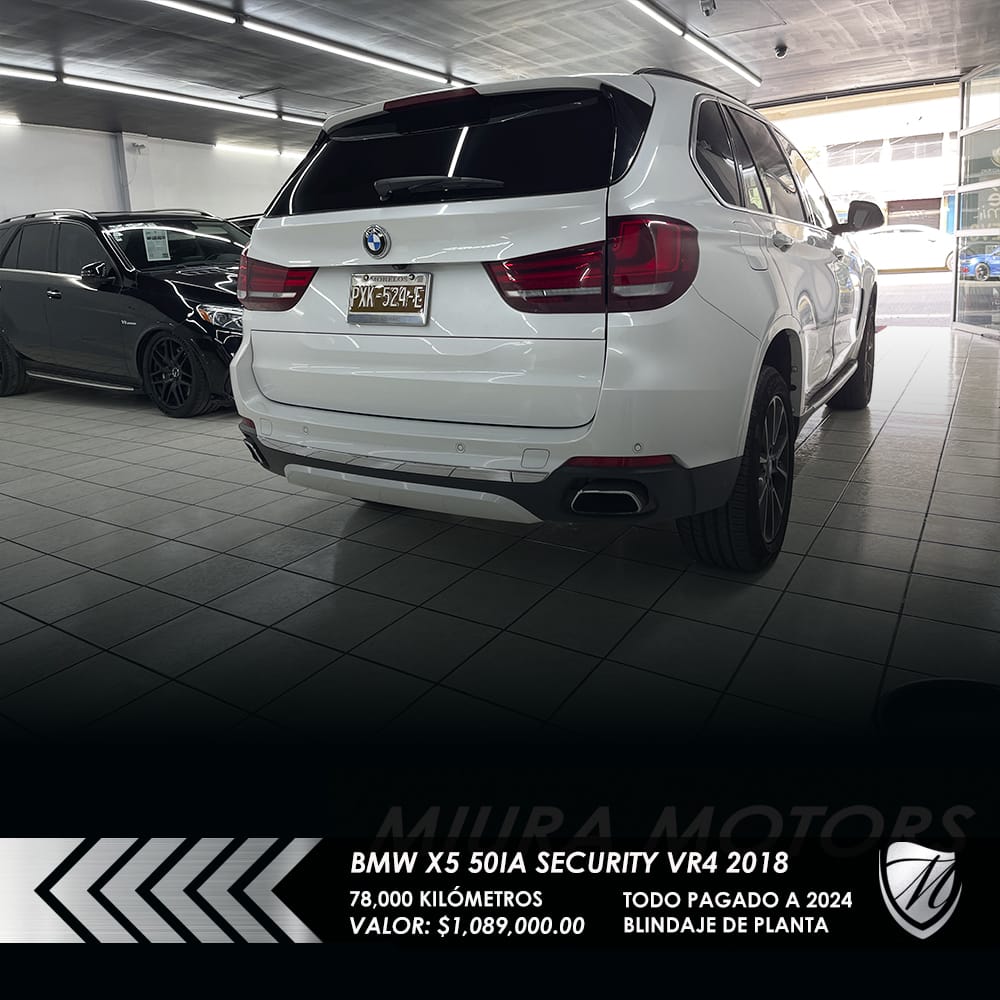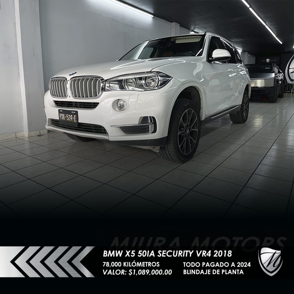 Segura blindada BMW X5 xDrive 50ia Security Nivel blindaje VR4 2018, máxima seguridad; resiste calibres que van desde 9 mm Luger, .357 Magnum y hasta .44 Magnum, 78,000 kilómetros, Precio: $1,089,000.00. Protege a tu familia! Pregunta por forma de pago. ¡Apártala y gánala!